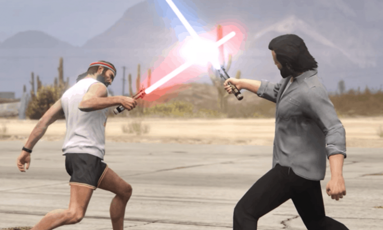 W sieci pojawił się krótki filmik nakręcony przez fana gry Grand Theft Auto V za pośrednictwem narzędzia Rockstar Editior. postanowił przenieść realia Gwiezdnych Wojen do najnowszego dzieła Rockstar. Możemy niby zerknąć wyłącznie na jeden pojedynek, ale jego uczestnikami są Darth Trevor oraz Michael Kenobi.